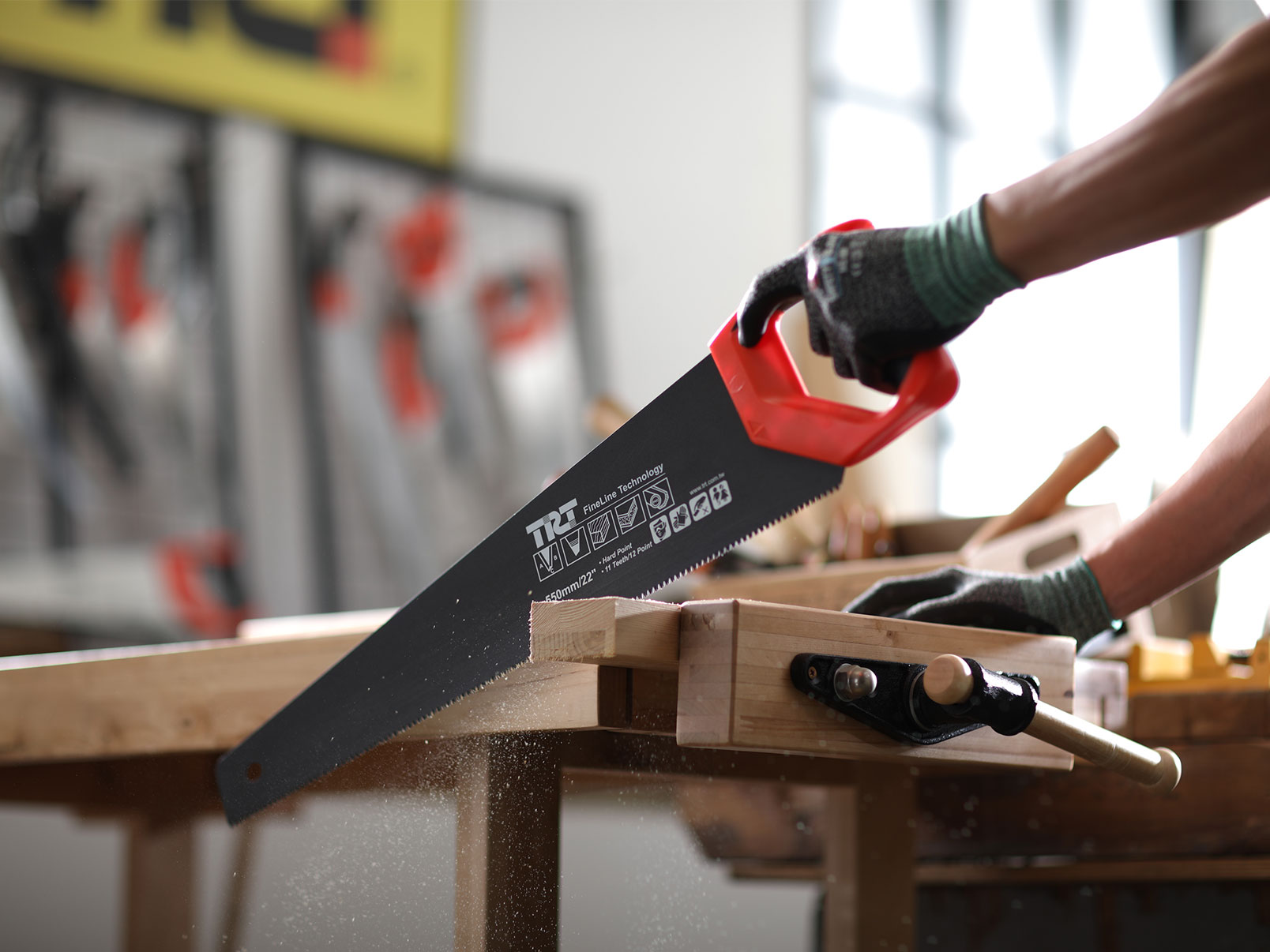 Designed handle allows the back of the saw to be used for marking 45° and 90°.